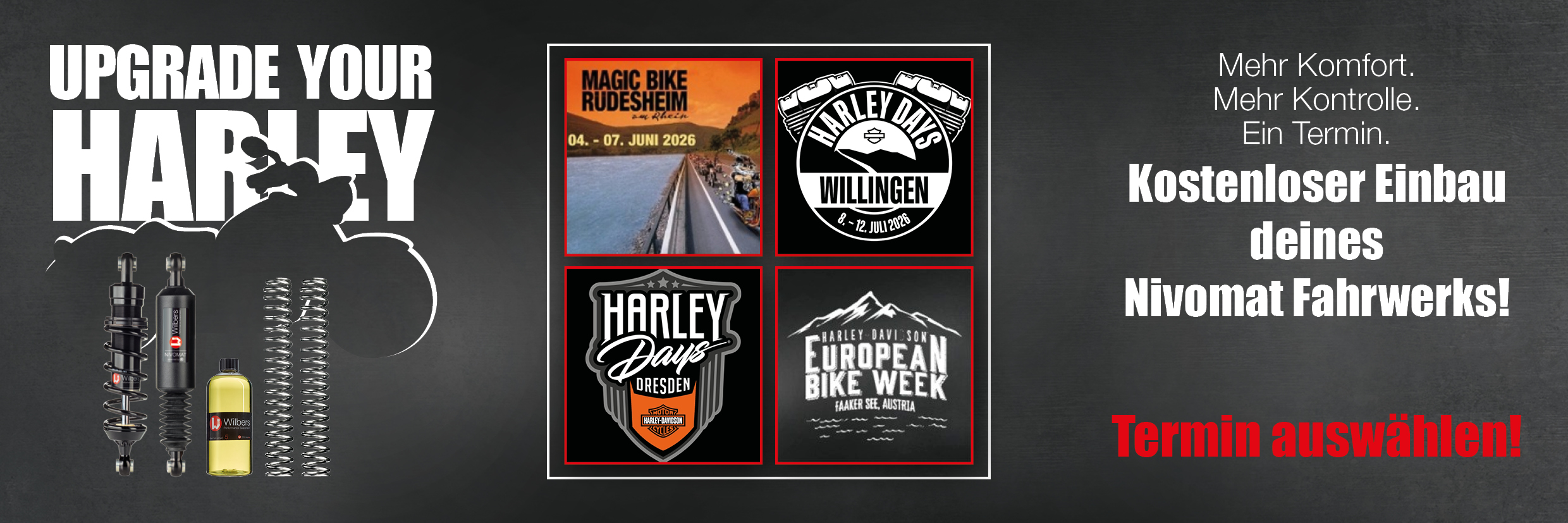 Komponenten gibt es um 50% reduziert (außer Nivomat-Kits - hier sind es 25%), der Einbau ist komplett gratis!
